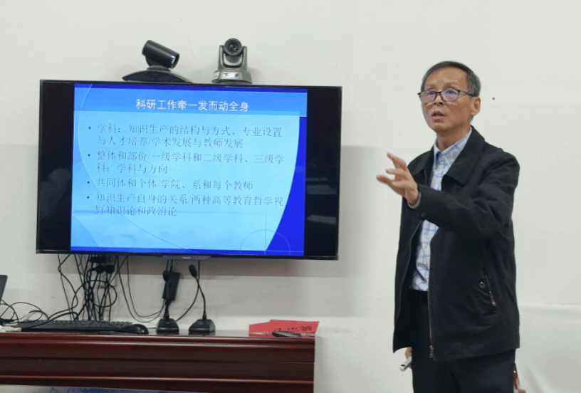 在两天的学术交流中,熊庆年教授围绕高校科研与教学核心议题,构建了“理论阐释—实践指导—案例剖析”的内容体系,先后以“二级学院科研管理优化与教师职业发展路径”“学术论文写作规范与质量提升策略”“教育科学规划项目申报逻辑与实战技巧”“新时期大学教师的使命担当与发展机遇”为主题展开深度分享。